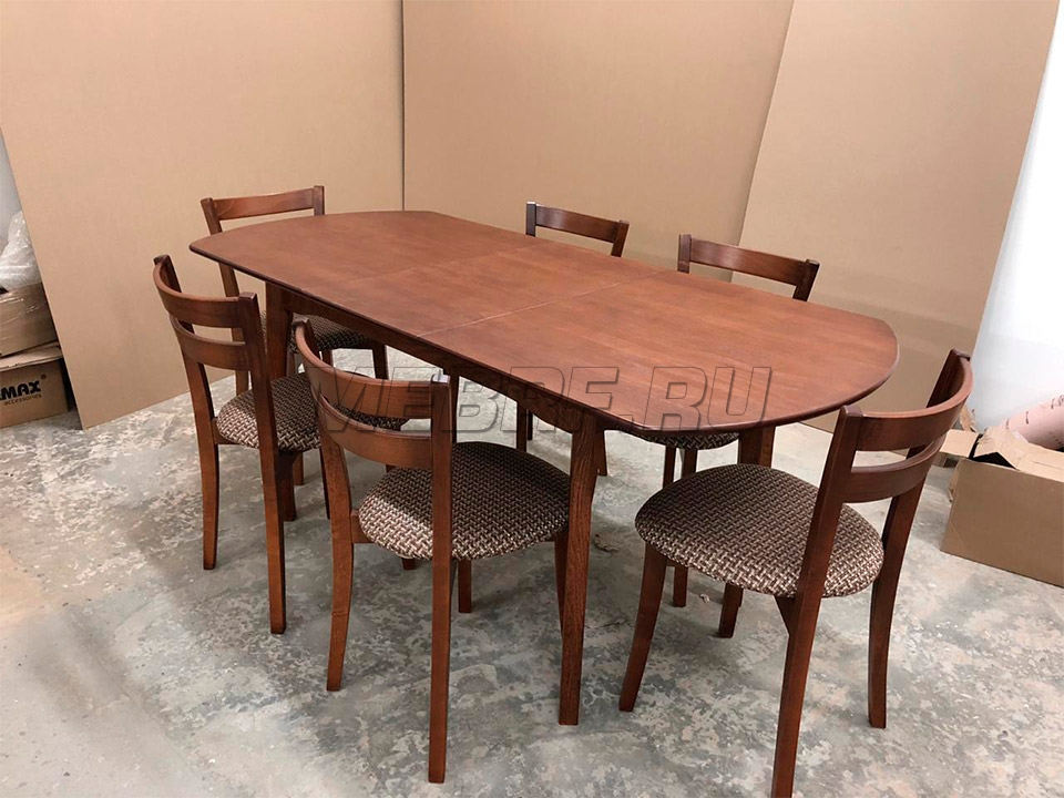 Недорогой комплект из натурального дерева. Стол+6 стульев. Современный надежный комплект для вашего дома или кабинета. Можно использовать в гостиных, кухнях, столовых, а также ресторанах и кафе.